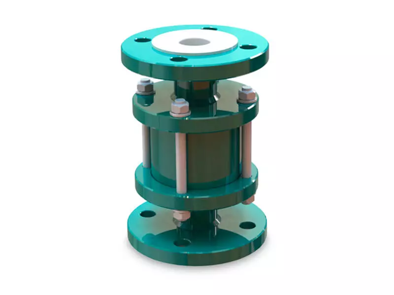 Clapet anti-retour a boisseau sphérique a revêtement PFA a alésage complet avec extrémités a brides et corps en 3 pièces, pour les applications corrosives.