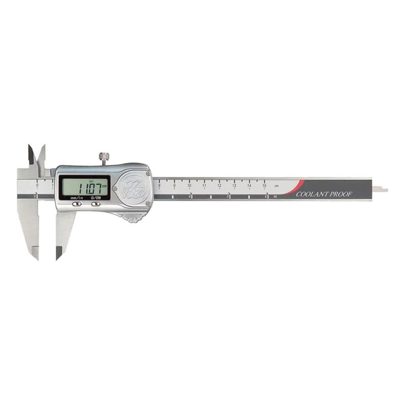Pied à coulisse digital 150 mm avec une résolution au 1/100è mm. Il dispose d’un double bec et d’une jauge de profondeur. Son vernier est étanche IP67, permettant une utilisation en milieu humide, sous intempéries ou projections d’eau.